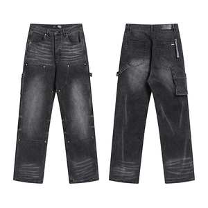 Pantaloni Cargo in Denim Vintage stile Streetwear da uomo larghi oversize effetto sbiadito lungo dritto a metà stampa per l'autunno